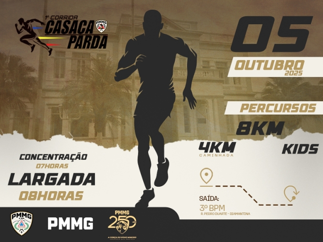 O Evento Esportivo CORRIDA DA POLICIA MILITAR doravante denominada – 1ª CORRIDA CASACA PARDA – 2025, será realizado na rua Pedro Duarte s/n, bairro Romana e imediações, em Diamantina, no dia 05 de Outubro de 2025, em qualquer condição climática, com participação de pessoas, homens ou mulheres devidamente inscritas, doravante denominadas ATLETAS.